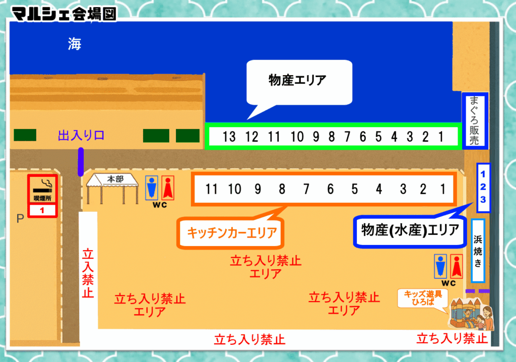 >>第3回富津シーサイドマルシェの会場詳細MAP(出入口1か所)